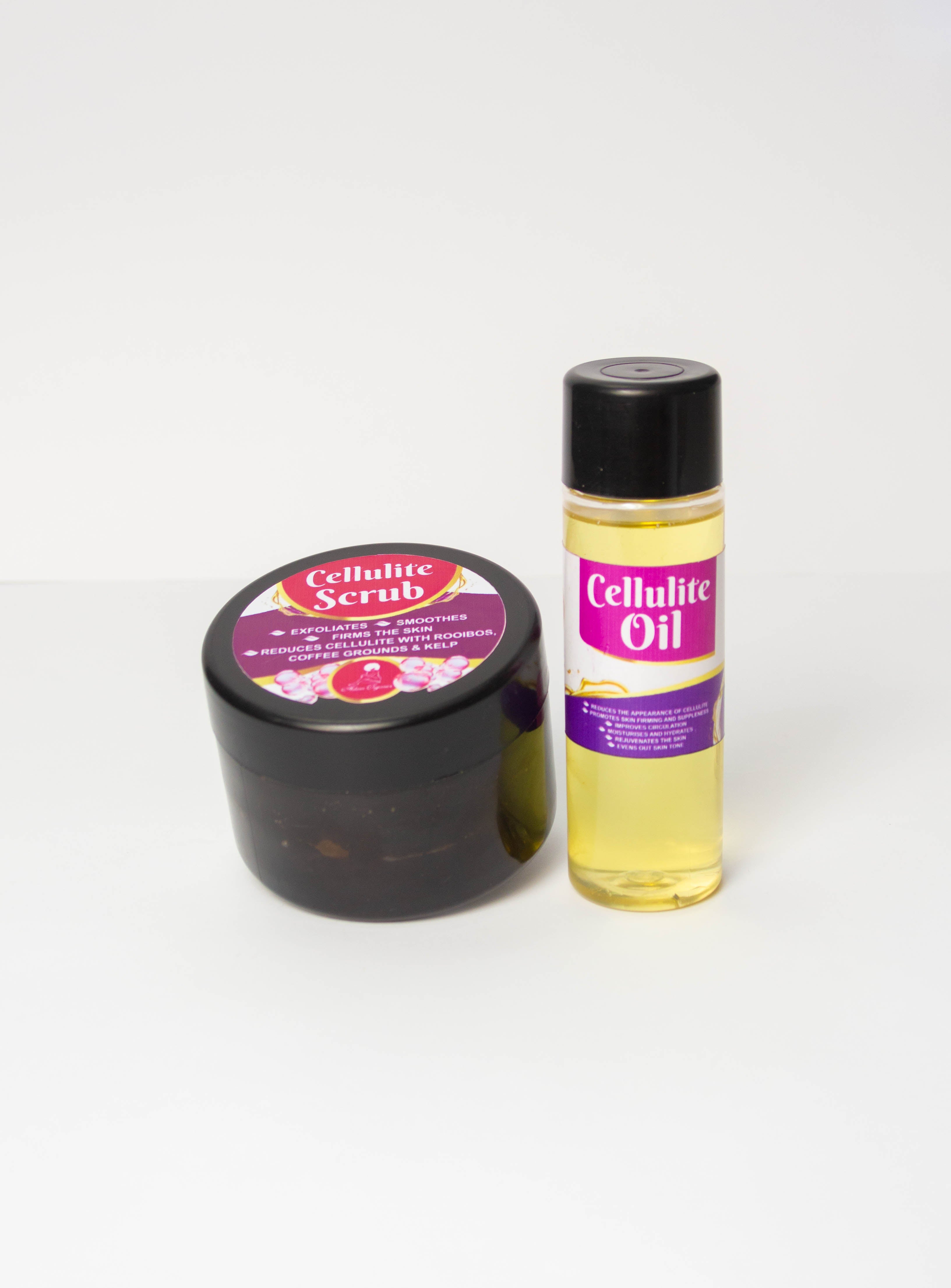 Adorn Organics Cellulite Combo pairs exfoliation and nourishing oil to firm and smooth the look of cellulite for South Africans.