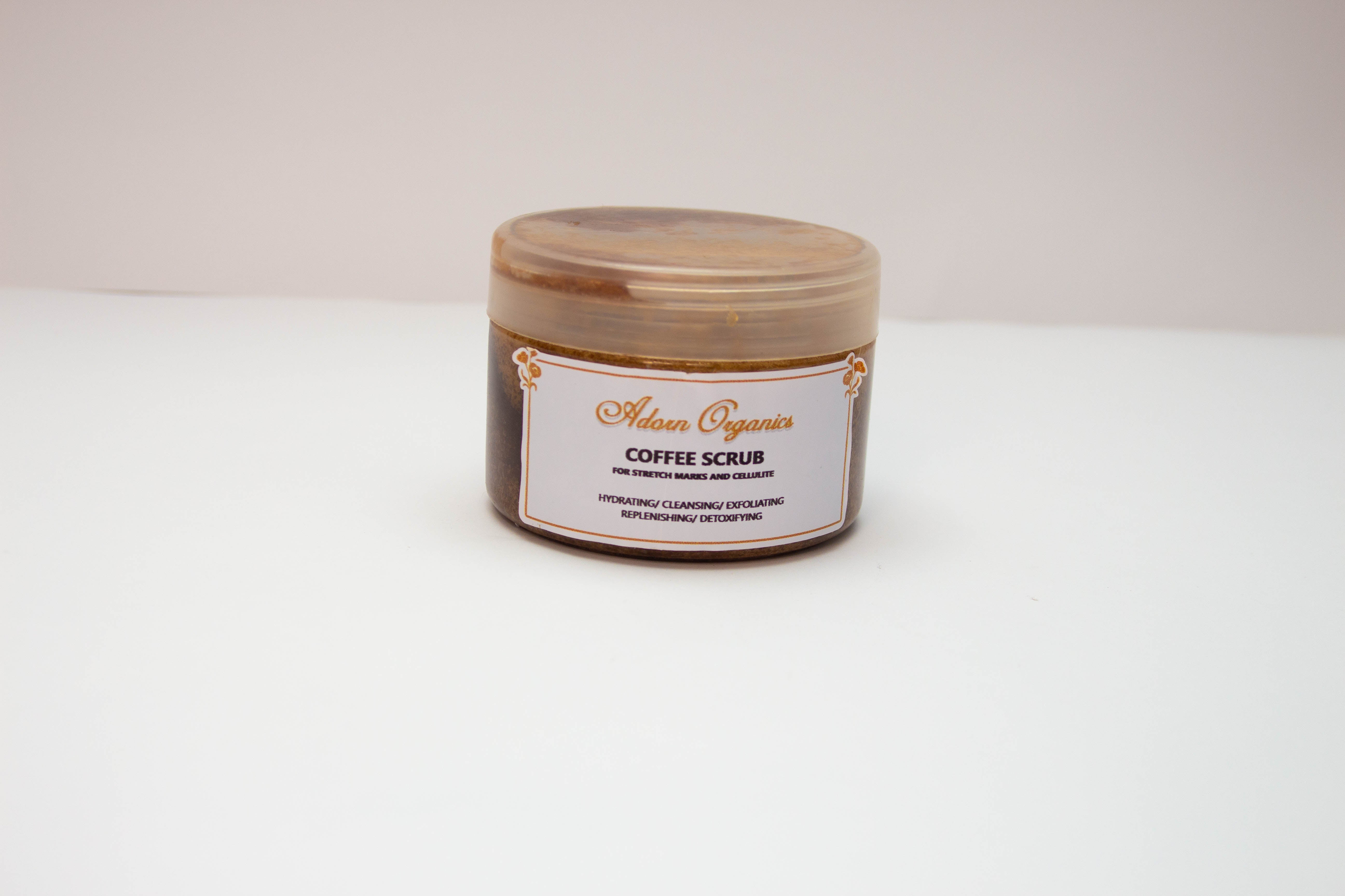 Adorn Organics Coffee Scrub exfoliates, boosts circulation, reduces puffiness and cellulite, and adds glow. A South African self‑care favourite.